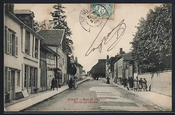 AK Piney, Rue de l`Église Sortie de l`École