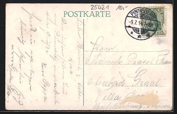 gelaufen 1914, rückseitig Oberflächenschaden, Eckknick li. oben, guter Zustand