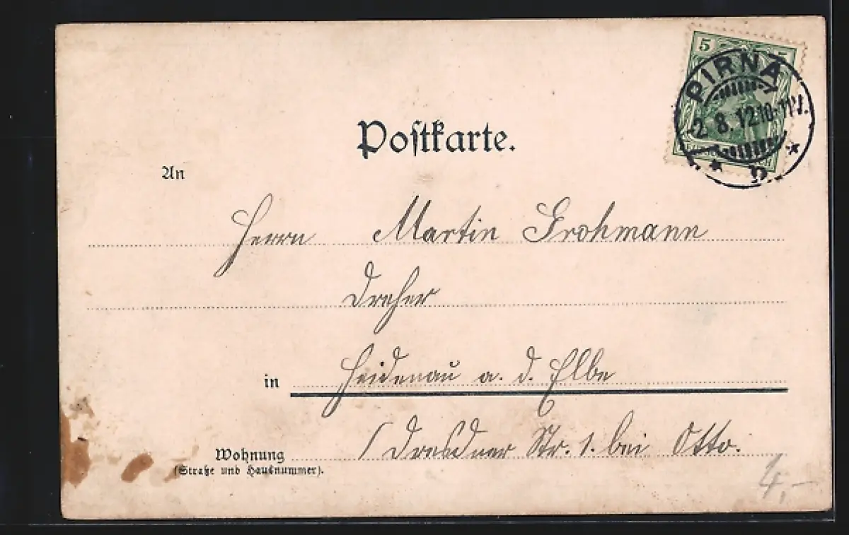alte Ansichtskarte, gelaufen 1912, Stempelspur, guter Zustand
