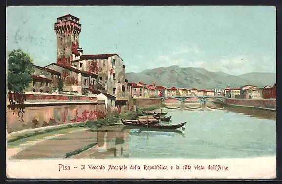 AK Pisa, Il Vecchio Arsenale della Repubblica e la città vista dall`Arno