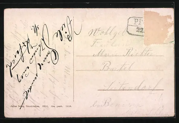 alte Ansichtskarte, gelaufen, Briefmarke entfernt, rückseitig Oberflächenschaden, guter Zustand
