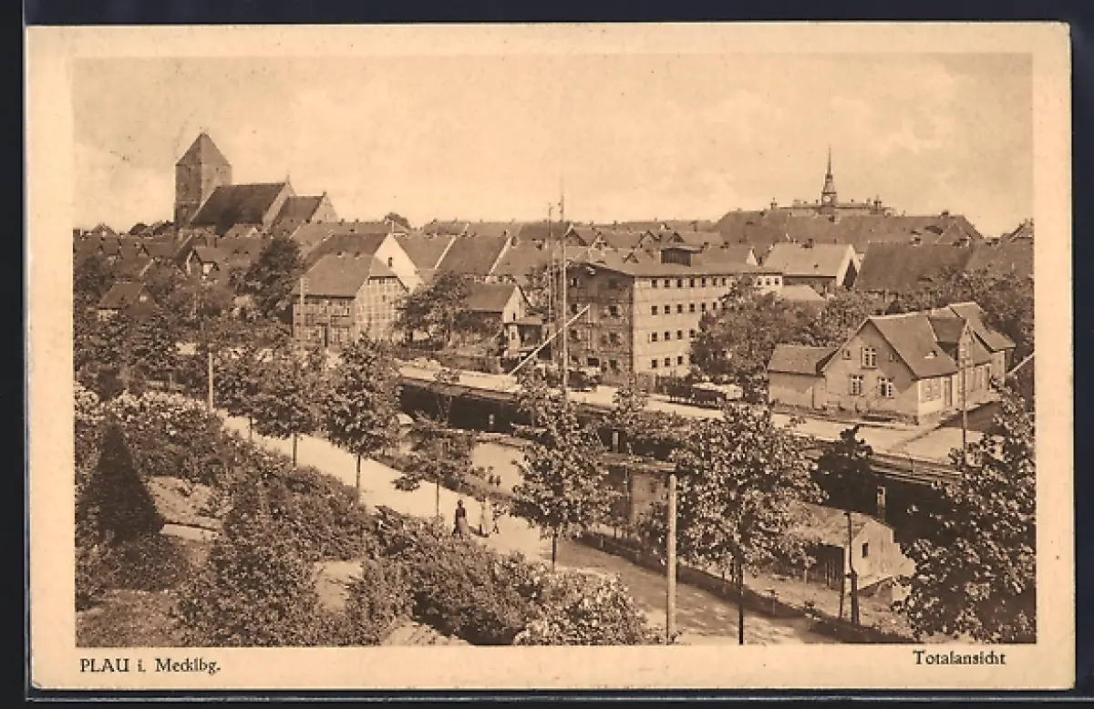 AK Plau i. Mecklb., Totalansicht mit Strassenpartie