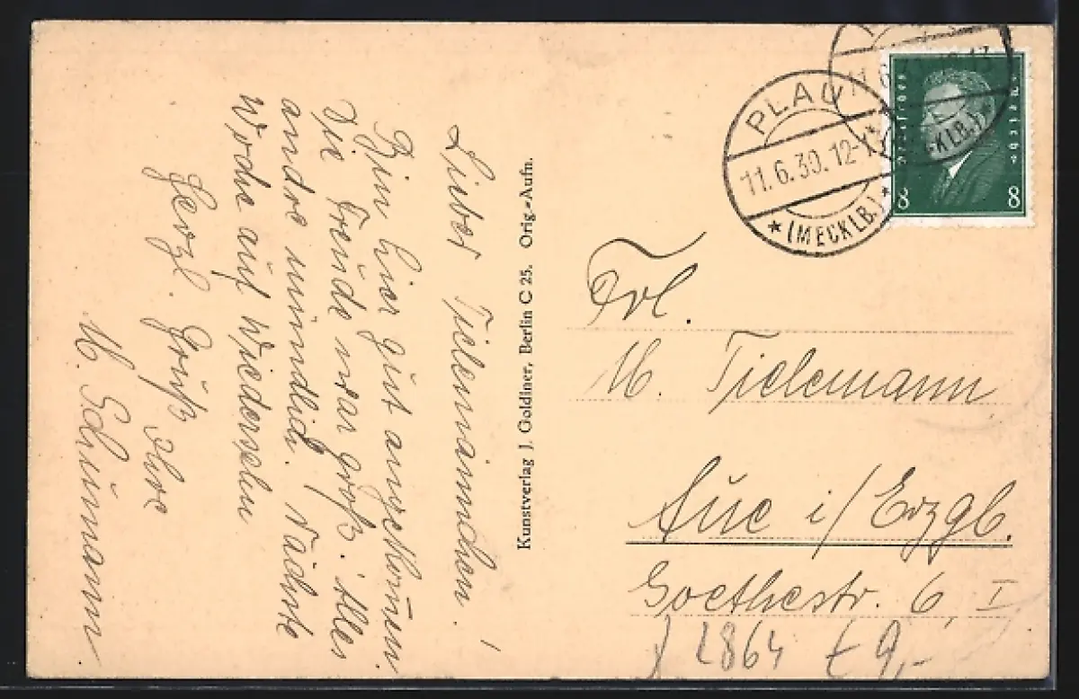 alte Ansichtskarte, gelaufen 1930, Eckknicke unten, guter Zustand