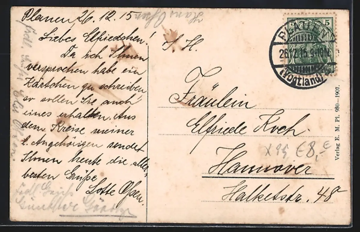alte Ansichtskarte, gelaufen 1915, Stempelspur, guter Zustand