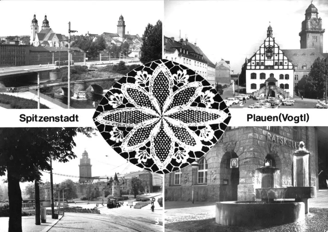 Ansichtskarte Plauen Vogtl. vier Abb., gestaltet Elster-Brücke, Am Alten Rathaus, Otto-Grotewohl-Platz, Ratskeller Erhaltung I-II ungelaufen Druckvermerk: 1982 Herstellungsland: DDR Verlag: VEB Foto-Verlag, 9958 Erlbach i. V. - 07 14 33 092