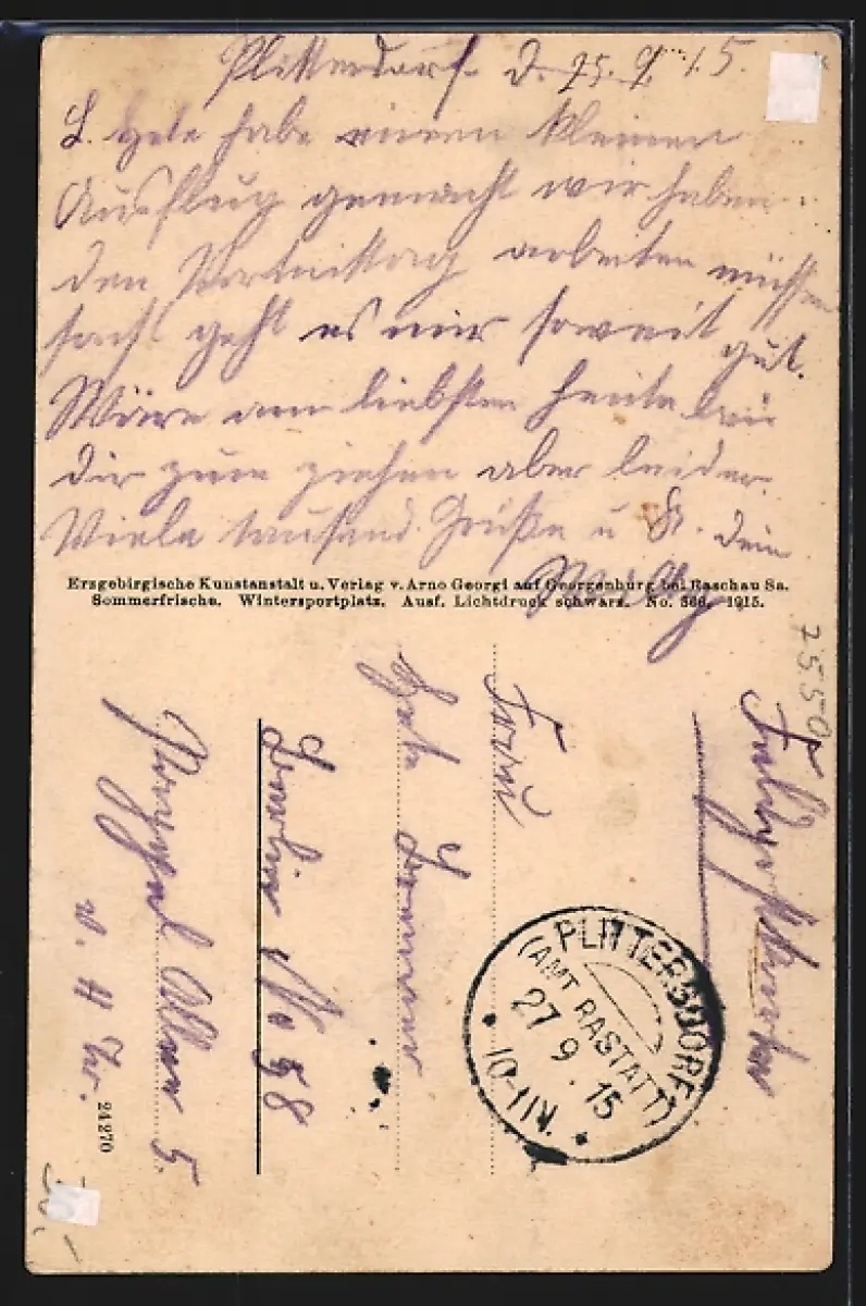 gelaufen 1915, rückseitig Klebe- und Papierreste, guter Zustand