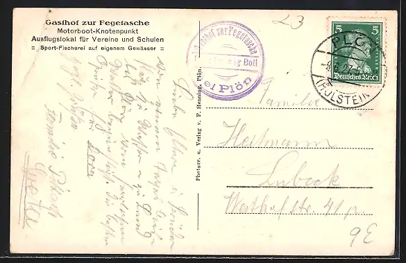 AK Plön, Gasthof zur Fegetasche