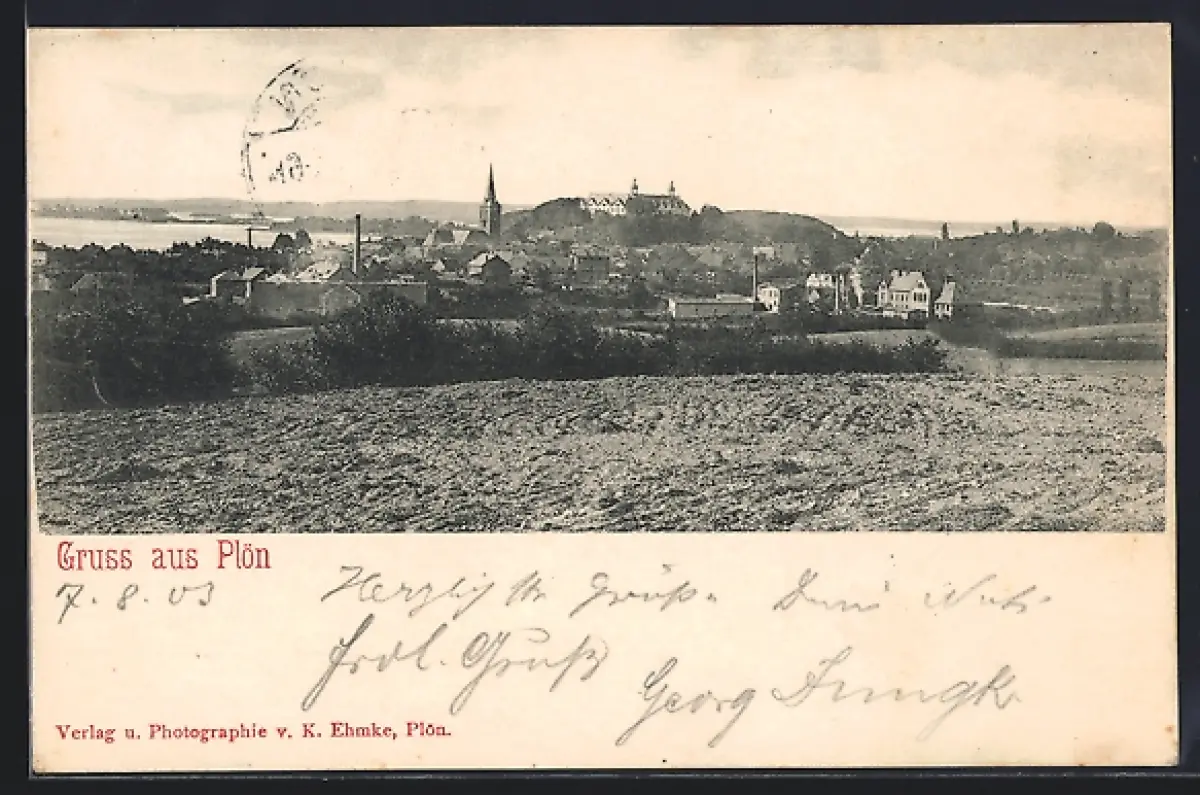 AK Plön, Stadtansicht mit Kirche und Schloss