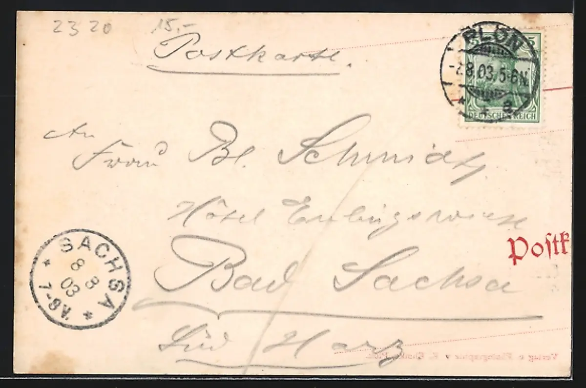alte Ansichtskarte, gelaufen 1903, Stempelspur, guter Zustand