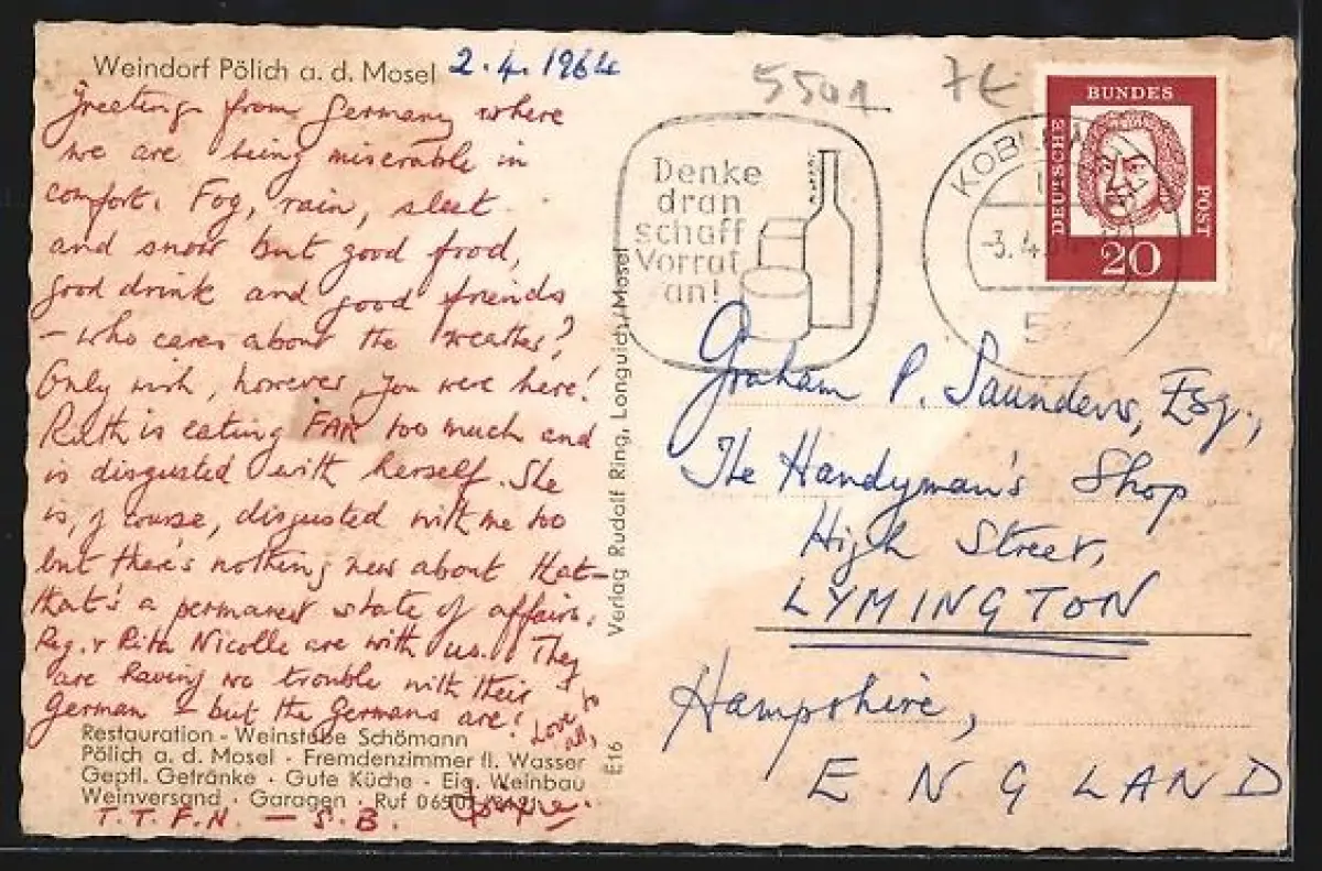 alte Ansichtskarte, gelaufen 1964, guter Zustand