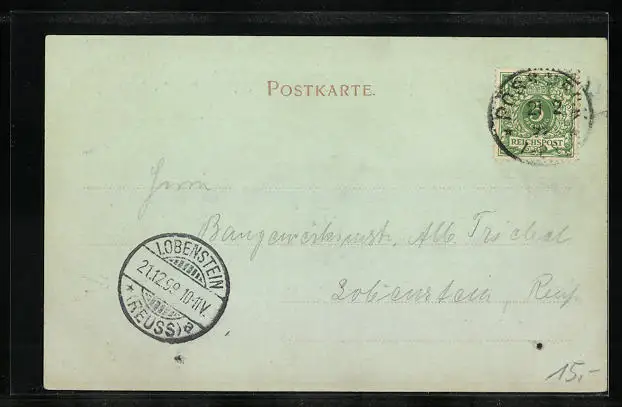 alte Ansichtskarte, gelaufen 1899, kleines Loch unten links, guter Zustand