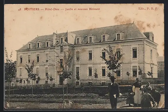 AK Poitiers, Hôtel-Dieu, Jardin et nouveau bâtiment