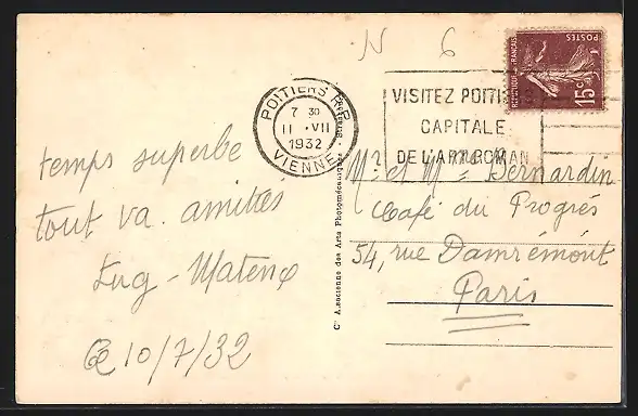 AK Poitiers, Route de Paris et Rochers du Porteau