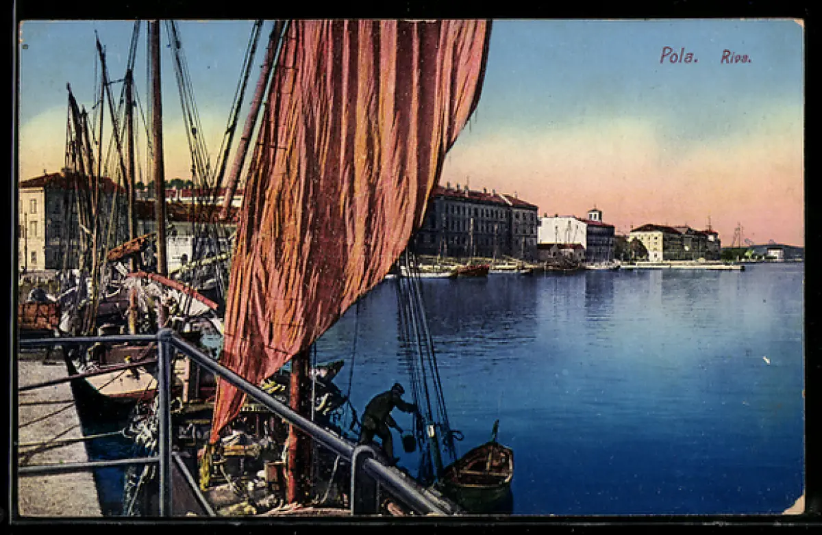 AK Pola, Riva, Boote im Hafen