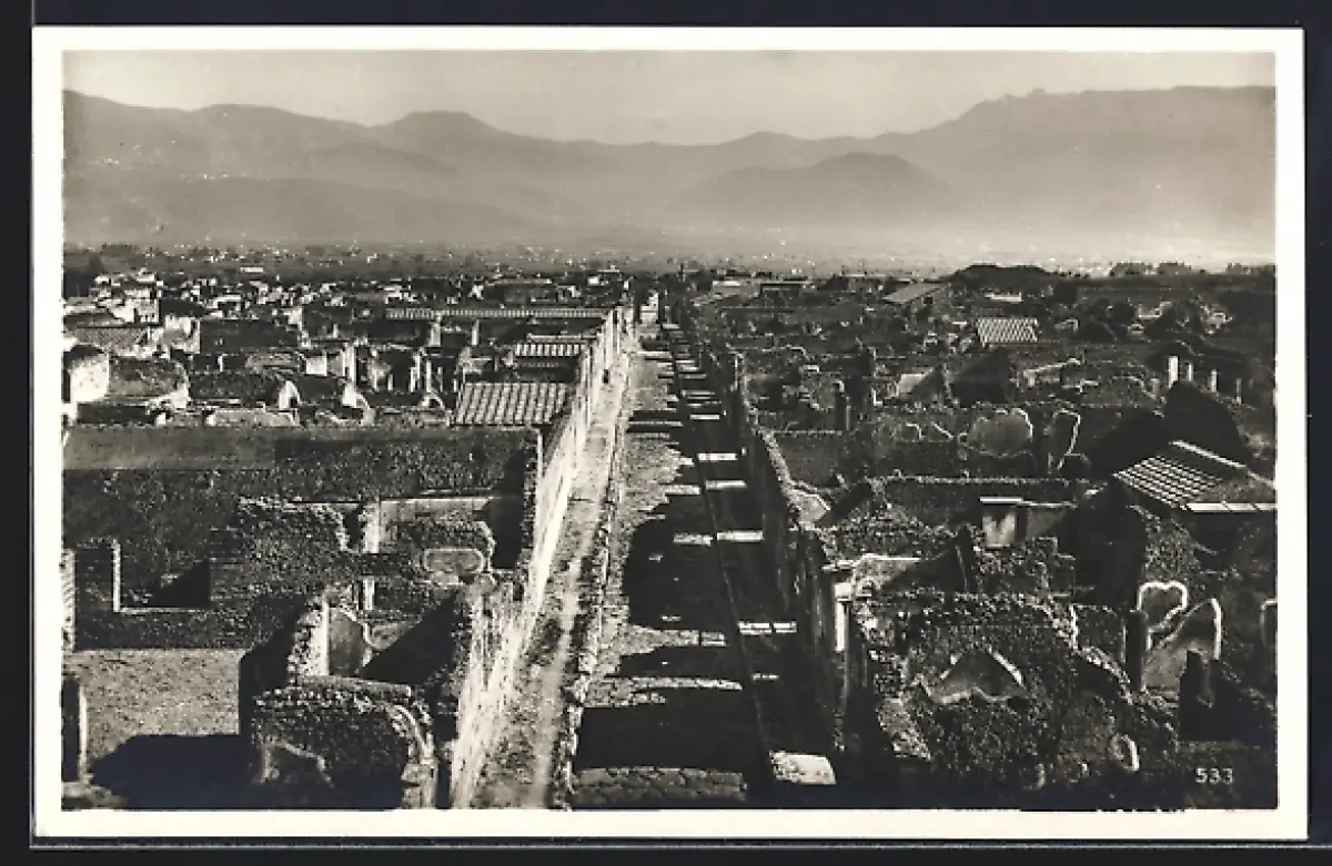 AK Pompeji, Blick über die ausgegrabene Stadt
