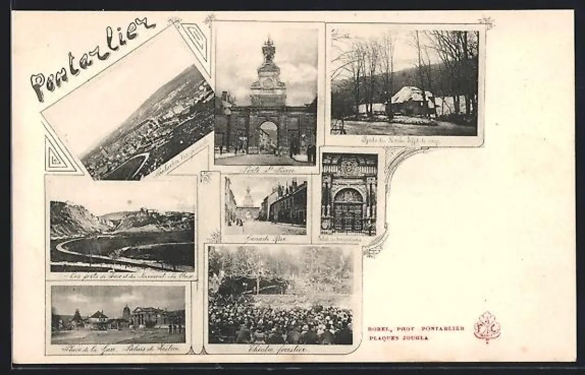 AK Pontarlier, Vue multi-vues avec Porte Saint-Pierre et paysages enneigés