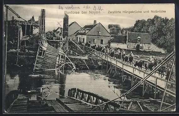 AK Pontoise, zerstörte Hängebrücke und Notbrücke