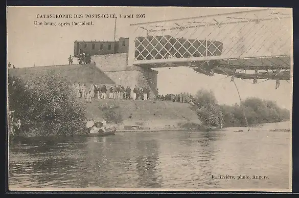 AK Ponts-de-Cé, Catastrophe 1907, Une heure après l`accident, Eisenbahnkatastrophe