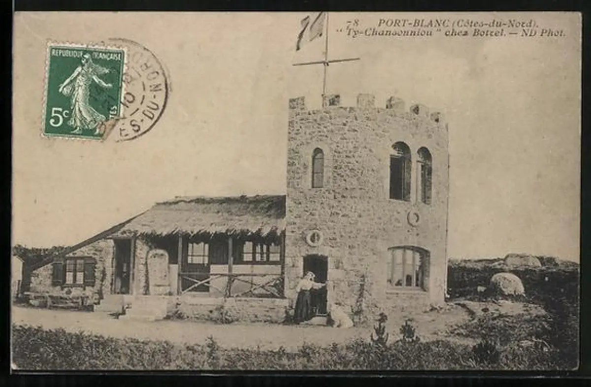 AK Port-Blanc /Côtes-du-Nord, Ty-Chanonnion chez Botrel, maison en pierre et tour battue par le vent