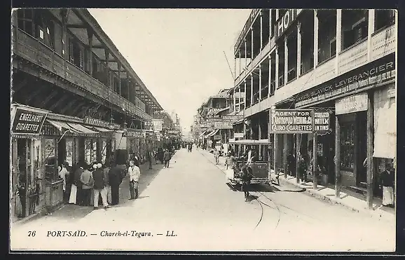 AK Port Said, Chareh-el-Tegara, Strassenpartie mit Pferdebahn
