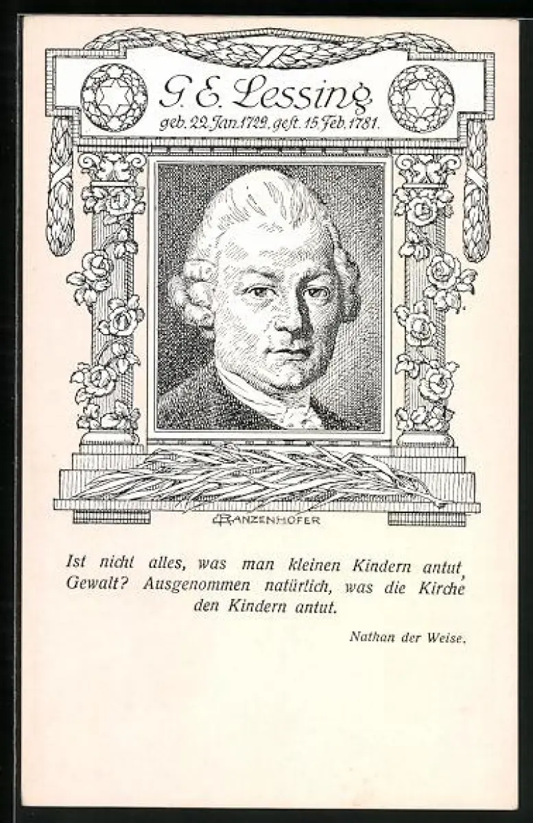 AK Porträt Gotthold Ephraim Lessing mit Zitat aus Nathan der Weise
