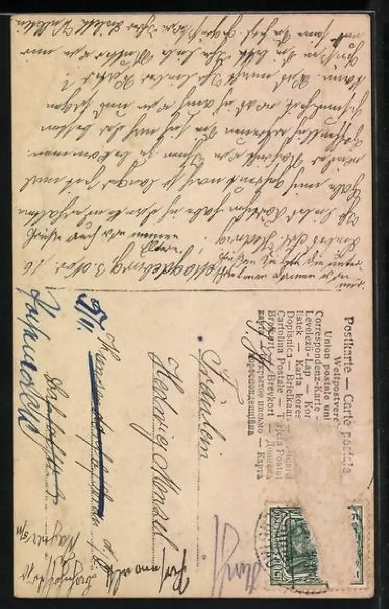 alte Ansichtskarte, ungelaufen, Briefmarke entfernt, rückseitig Oberflächenschaden, guter Zustand