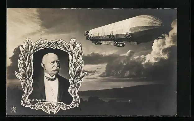 AK Portrait von Graf Zeppelin, Luftschiff im Flug
