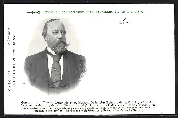AK Portrait von Gustav v. Moser, Lustspieldichter