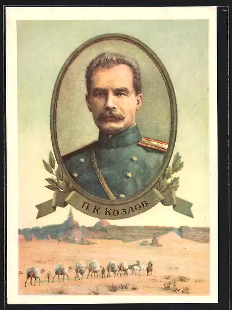 AK Portrait von Kozlov in Wüstenlandschaft mit Kamelen