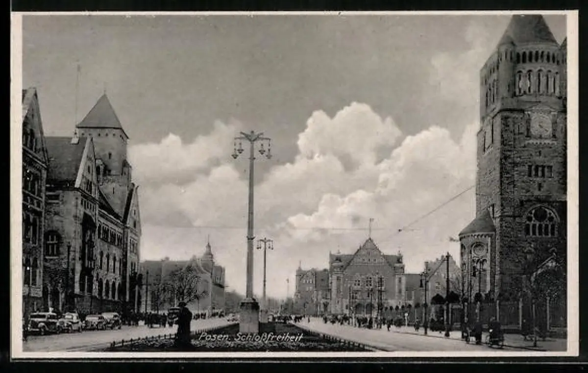 AK Posen / Poznan, Strassenpartie an der Schlossfreiheit