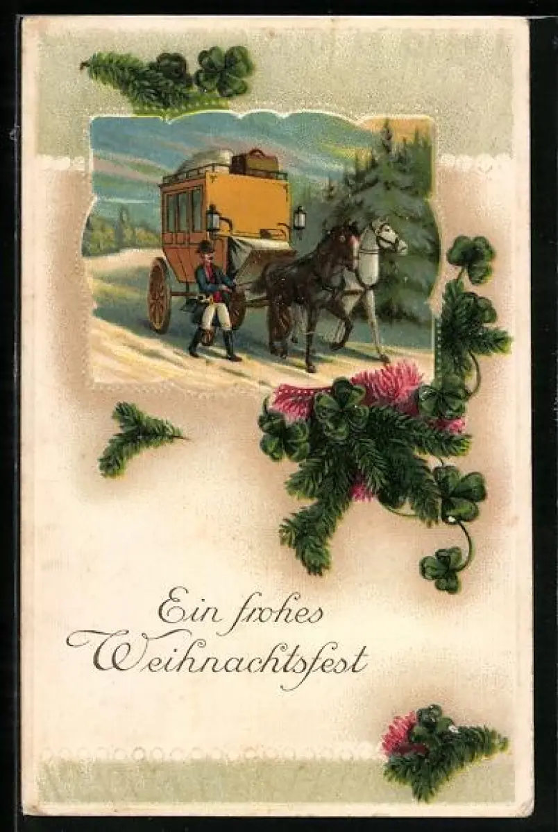 AK Postkutsche, Weihnachtsgruss