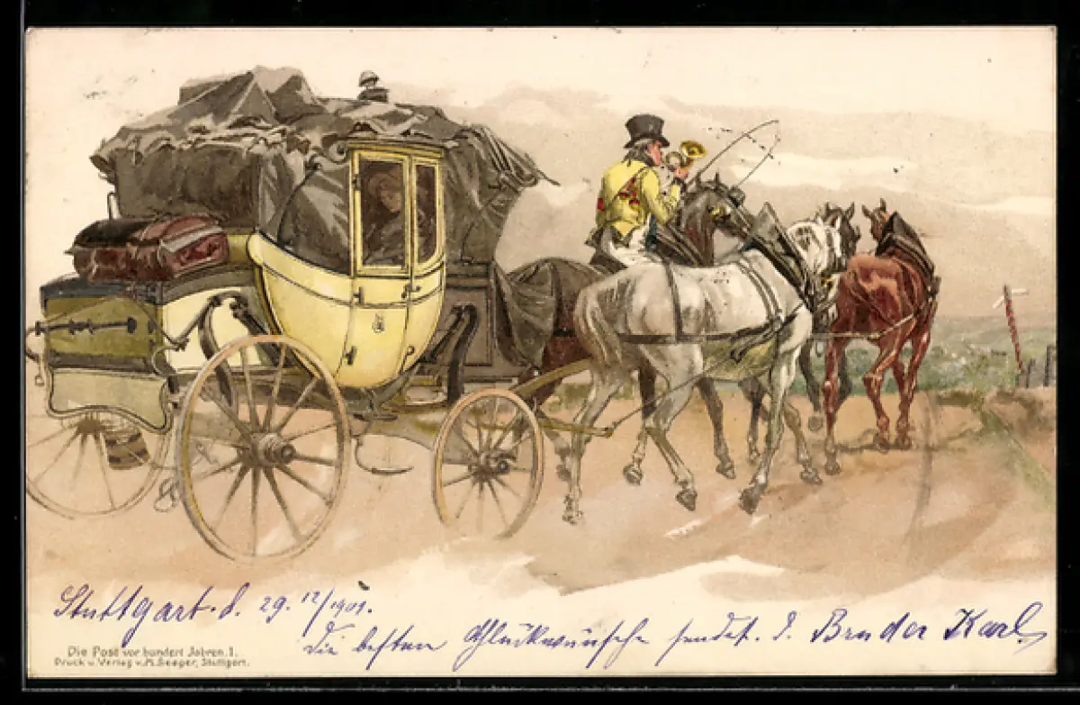 AK Postkutsche auf einem Berg