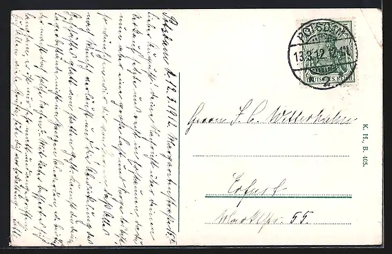 alte Ansichtskarte, gelaufen 1912, Eckknick oben li., guter Zustand