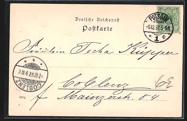 alte Ansichtskarte, gelaufen 1897, Stempelspur, guter Zustand