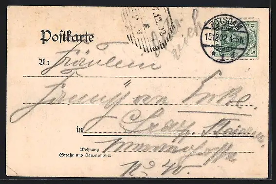alte Ansichtskarte, gelaufen 1902, Eckknick unten re., Stempelspur, guter Zustand