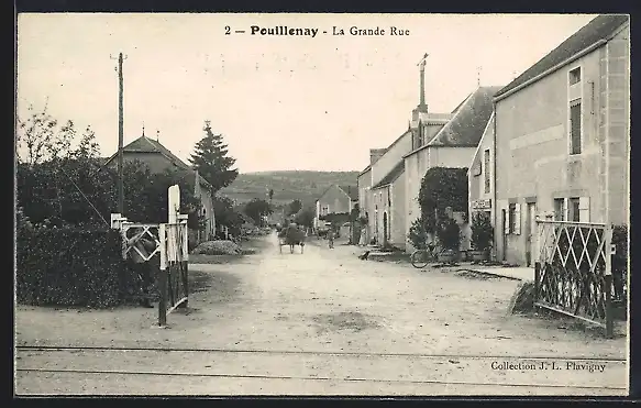 AK Pouillenay, La Rue Principale, Strassenpartie