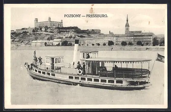 AK Pozsony / Pressburg, Teilansicht mit Dampfschiff auf dem Wasser