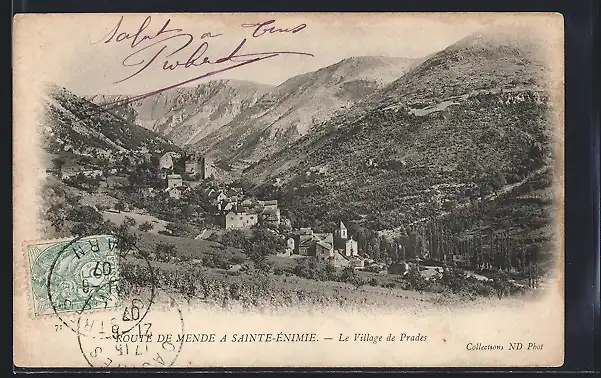 AK Prades, Le village de Prades sur la route de Mende à Sainte-Énimie