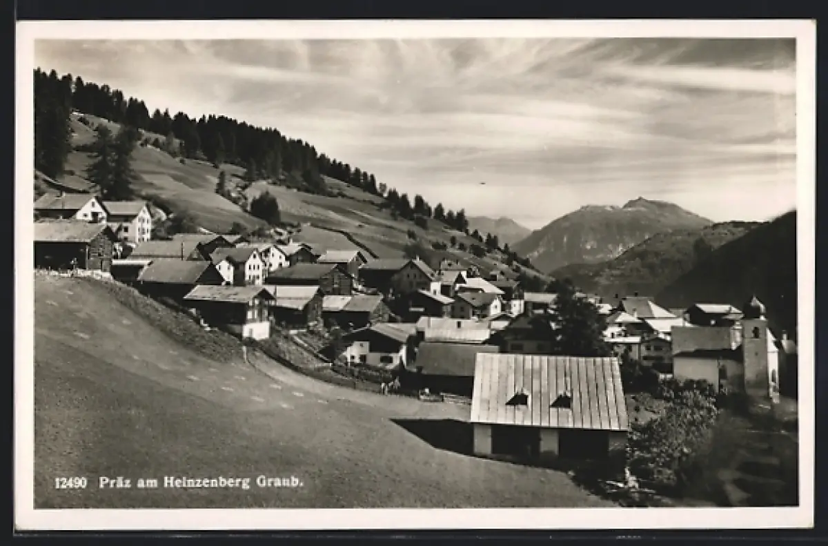 AK Präz am Heinzenberg, Teilansicht mit Bergen