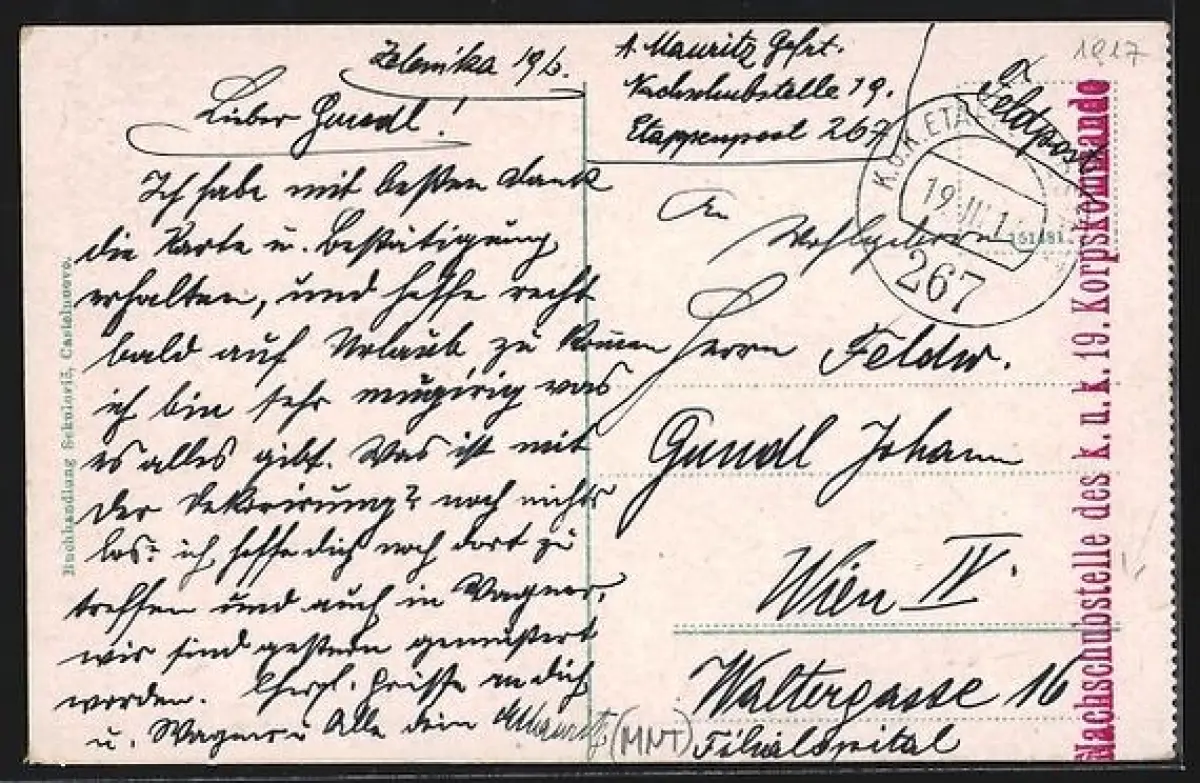 gelaufen 1917, Eckknick re. oben, minimaler Einriss li. unten, guter Zustand