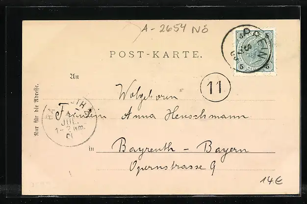 alte Ansichtskarte, gelaufen 1900, guter Zustand