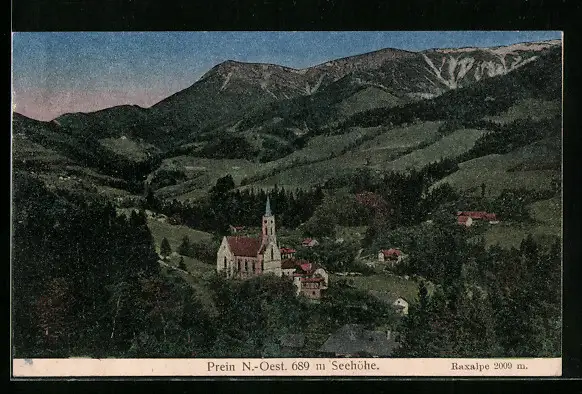 AK Prein, Ortsansicht aus der Vogelschau, glänzend