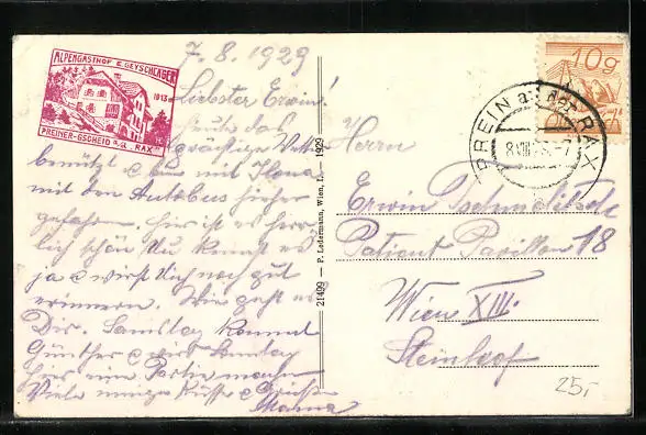 AK Prein a. d. Rax, Gasthof Geyschläger, Preiner-Gscheid