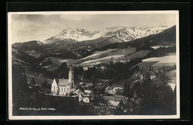 AK Prein a. d. Rax, Ortsansicht mit Rax