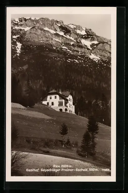AK Preiner-Gscheid, Gasthof Geyschläger aus der Vogelschau