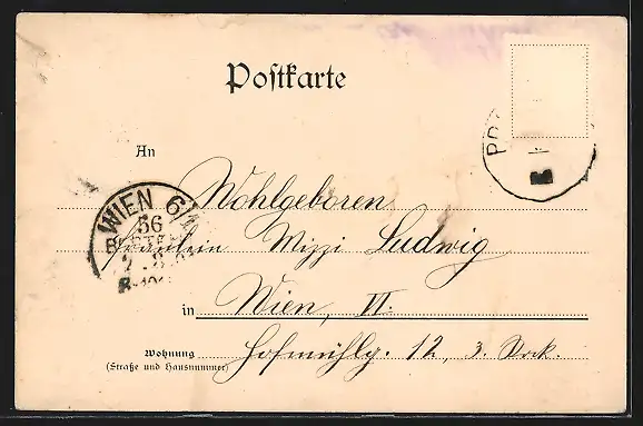 alte Ansichtskarte, gelaufen 1901, Briefmarke entfernt, Stempelspur, guter Zustand