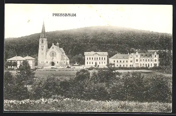 AK Pressbaum, Ortspanorama mit Kirche