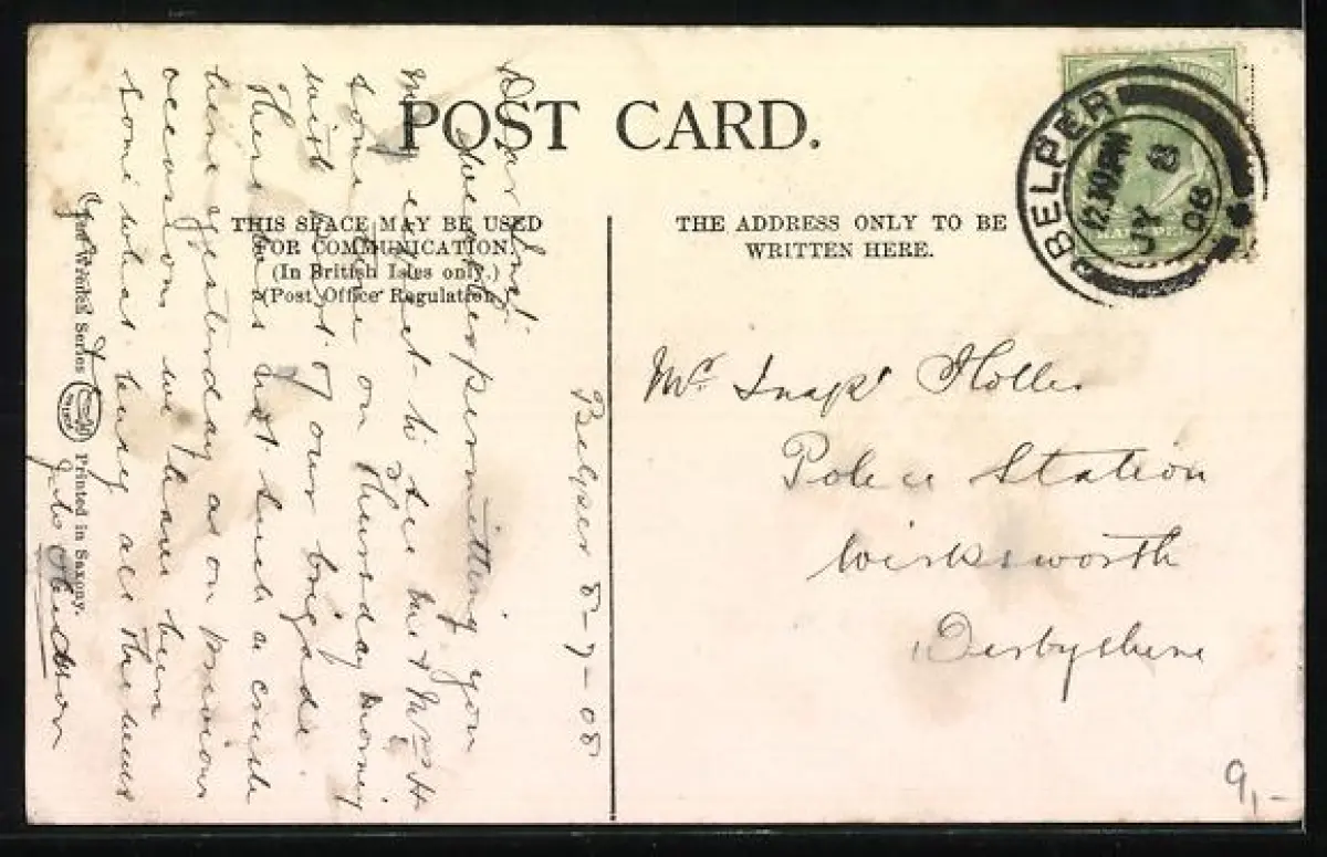 alte Ansichtskarte, gelaufen, Eckknicke links oben und rechts unten, guter Zustand