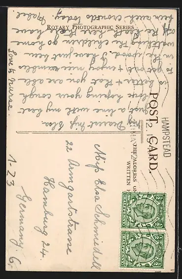 alte Ansichtskarte, gelaufen 1912, Eckknick re. unten, Klebe- u. Papierreste li. unten, guter Zustand