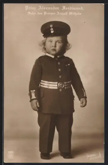 AK Prinz Alexander Ferdinand, Sohn des Prinzen August Wilhelm im Kindesalter in Uniforms-Kostüm